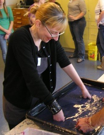 Annie is currently an Assistant Professor of Art Education and Visual Arts Therapy at West Virginia University where she teaches art educators on enhancing art education curriculum with therapeutic techniques and is also in the process of developing an accredited art therapy program at WVU. She hopes to incorporate papermaking into the programs at WVU and plans to continue researching the positive outcomes associated with papermaking modalities in art therapy settings.